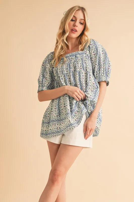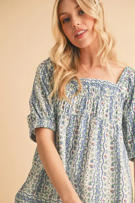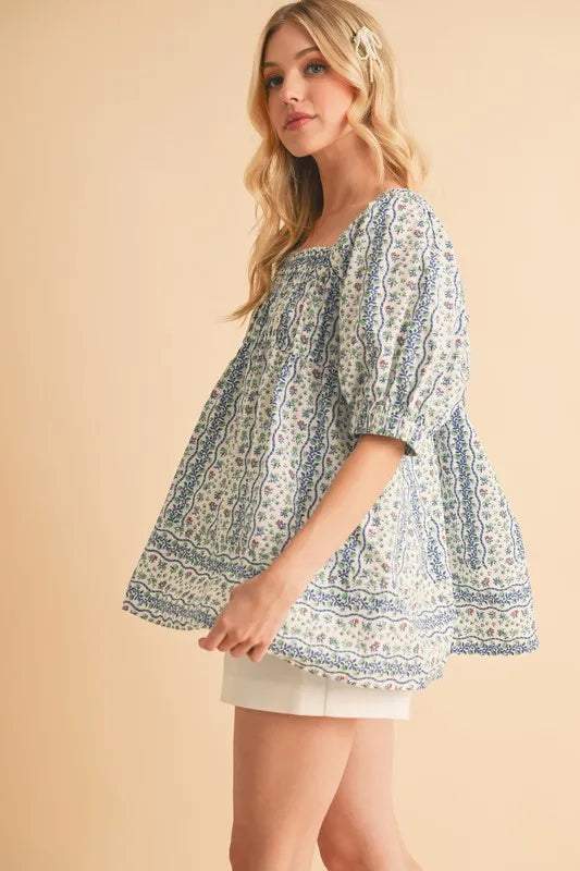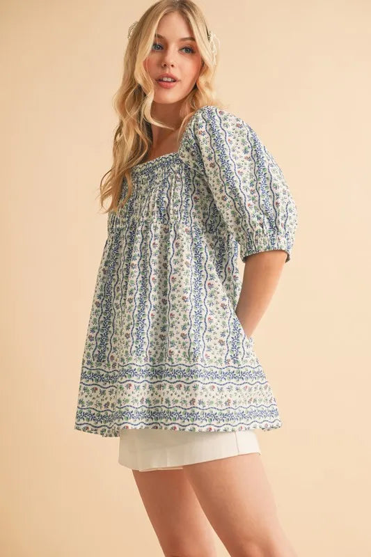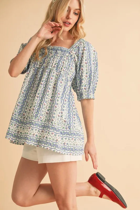 Aemi+Co Floral Short Sleeve Babydoll Top