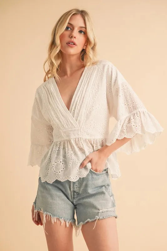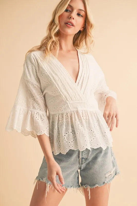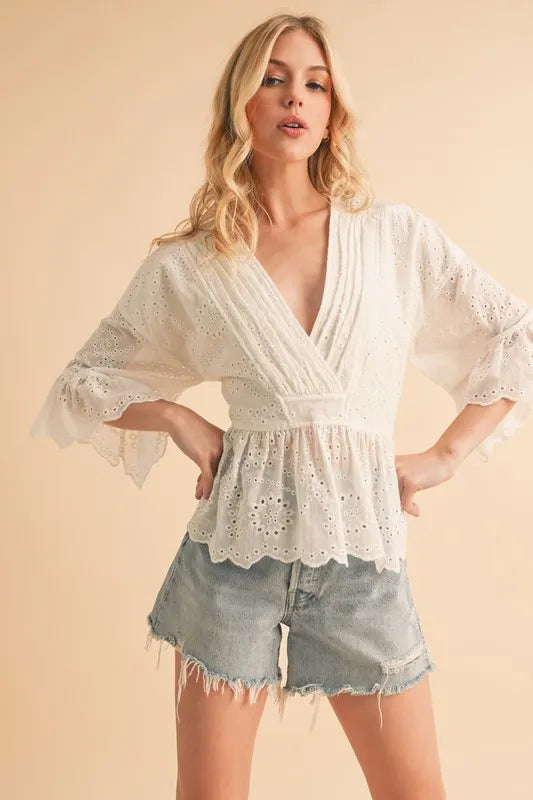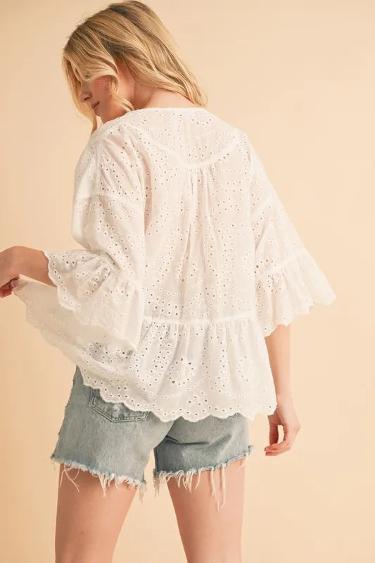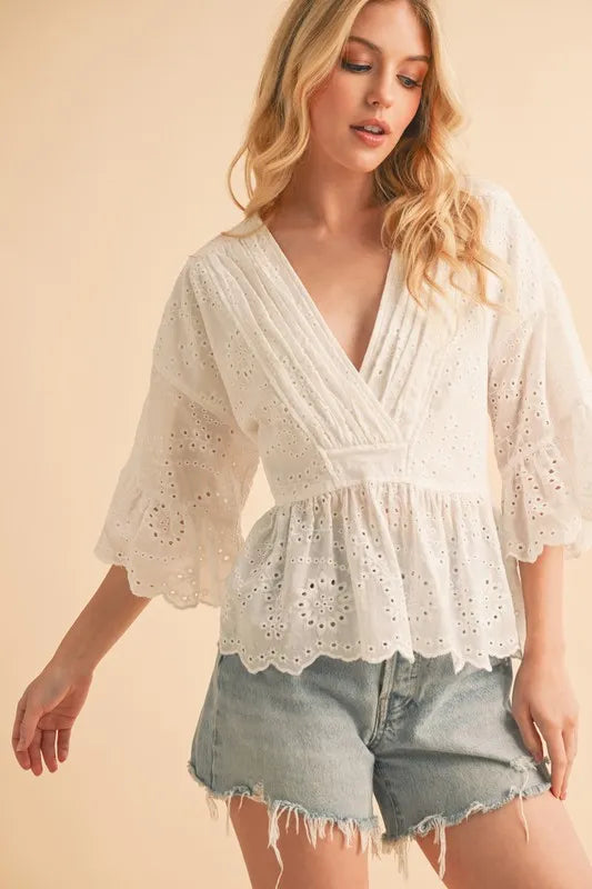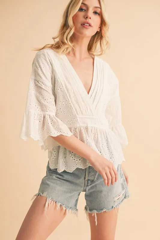 Aemi+Co Flounce Sleeve Eyelet Peplum Top