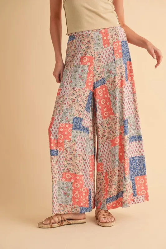 Printed wide leg pants are a stylish and versatile addition to your wardrobe. The printed design adds a pop of color and pattern to your outfit, making a bold fashion statement. The wide leg silhouette offers comfort and movement, while the printed pattern adds a touch of flair and personality to your look. These pants are perfect for adding some fun and interest to your outfit, whether for a casual day out or a special occasion.