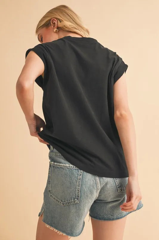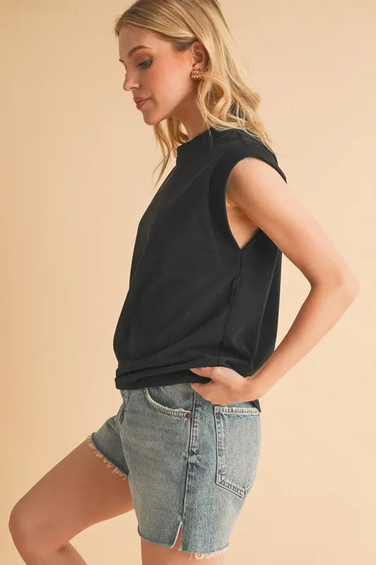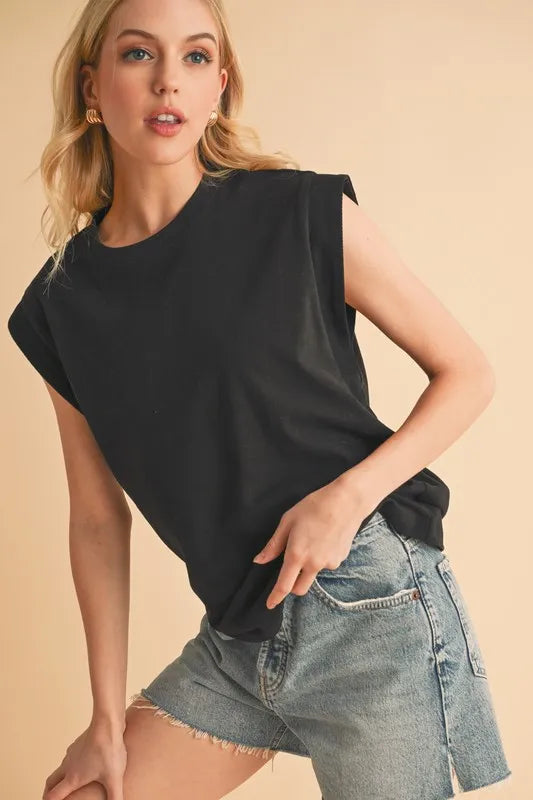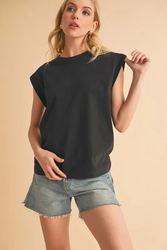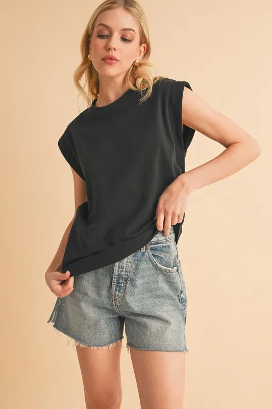 Aemi+Co Solid Color Round Neck Sleeveless Top