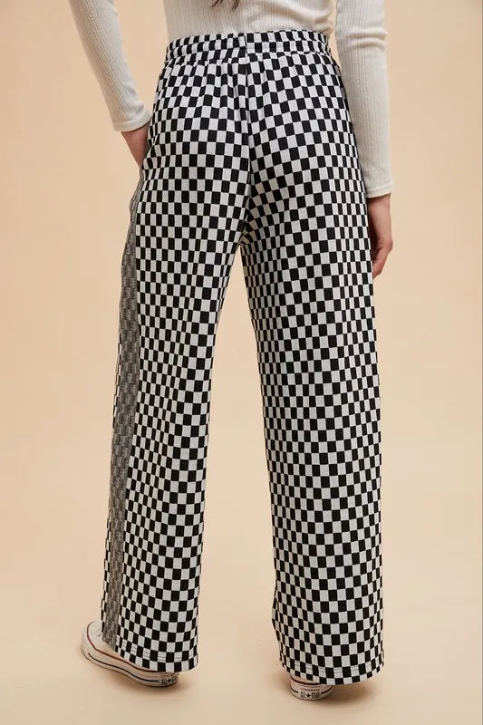 Annie Wear Drawstring Checkered Wide Leg Pants
