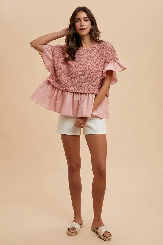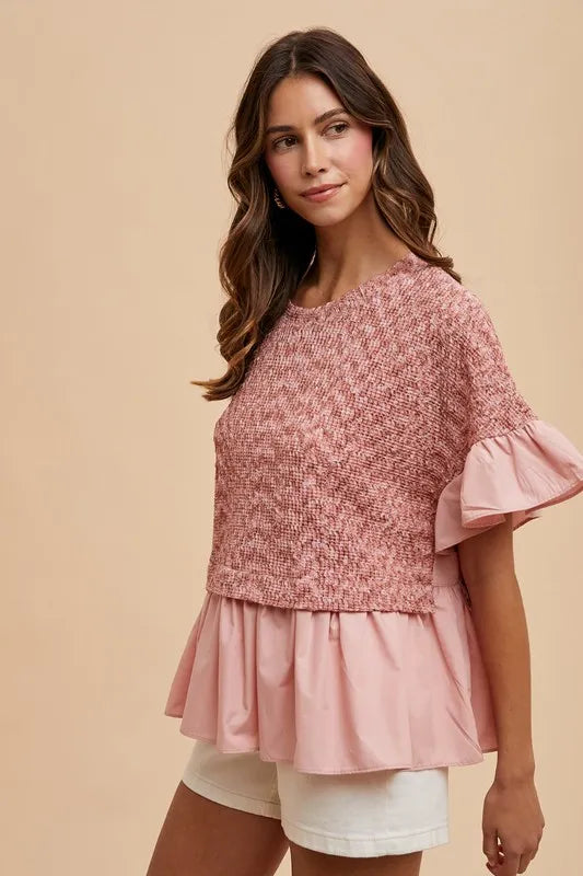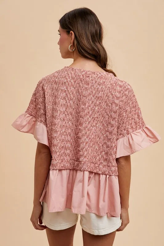 Annie Wear Mix Media Ruffle Textured Knit Top