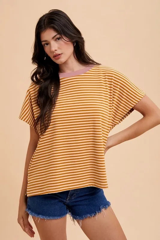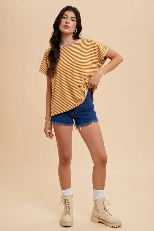 Annie Wear Stripe Soft Brushed Knit Dolman Sleeve Top