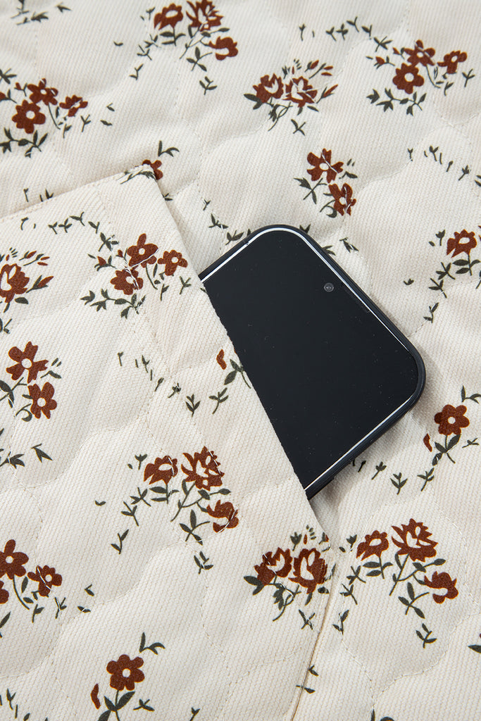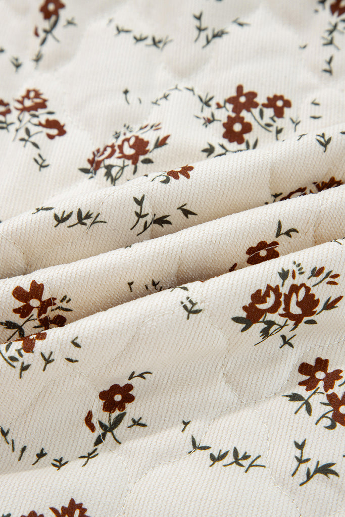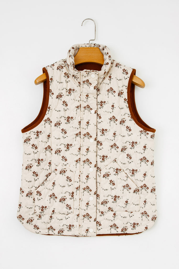 Apricot Floral Print Zip Up Quilted Vest