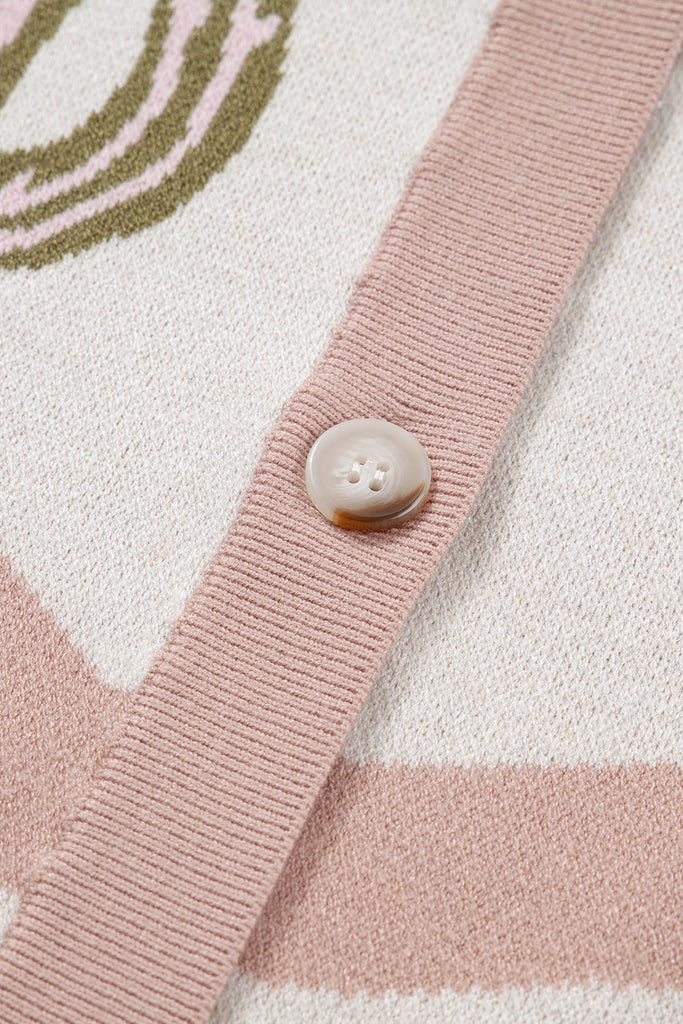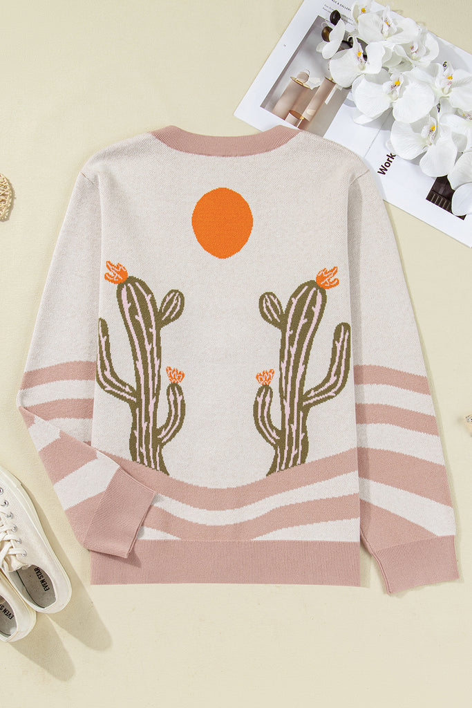 Apricot Western Desert Cactus Print Plus Size Button Cardigan Sweater