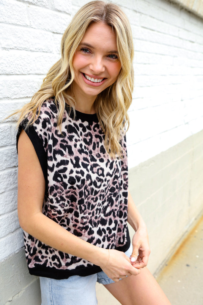 Be Bold Dolman Short Sleeve Leopard Print Knit Top