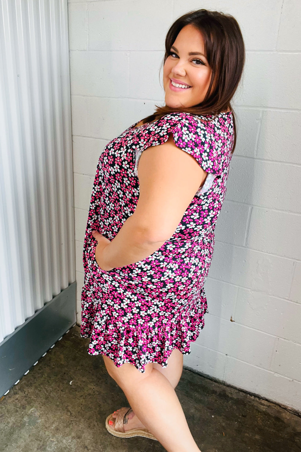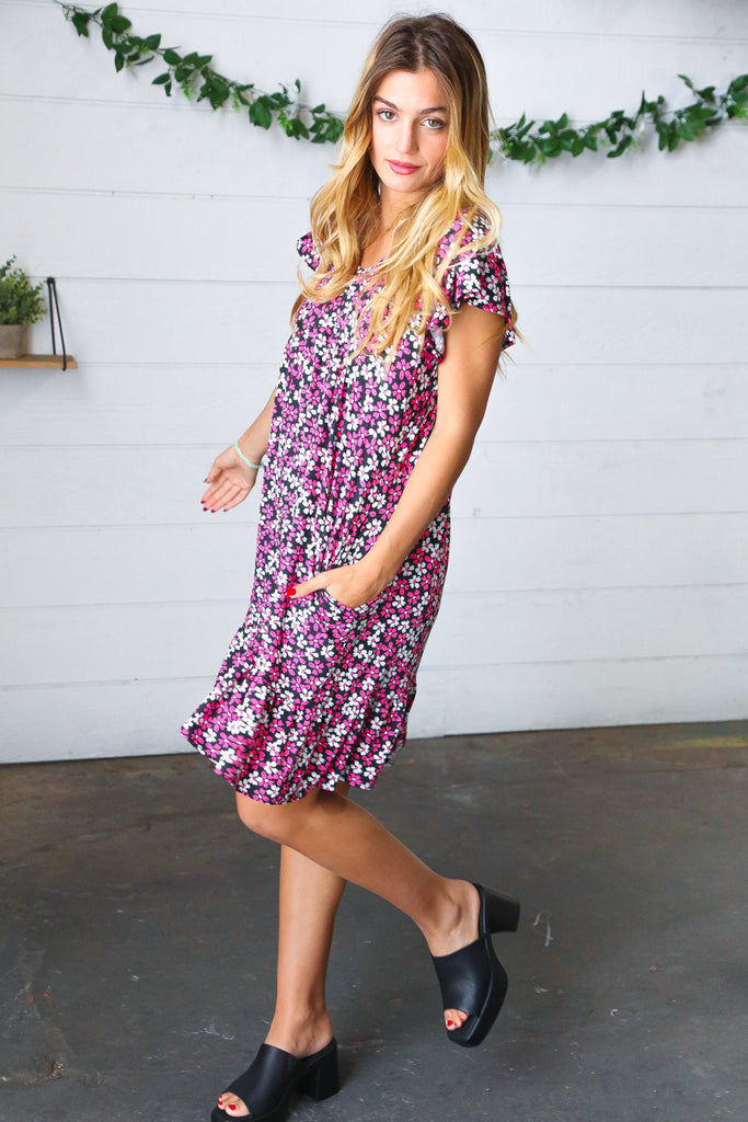 Floral Print + Side Pockets + Flutter Sleeves
