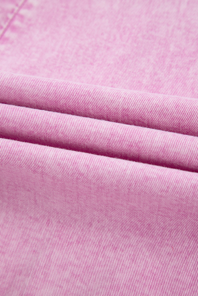Bonbon Mineral Wash Pleated Bust V Neck Sleeveless Denim Romper