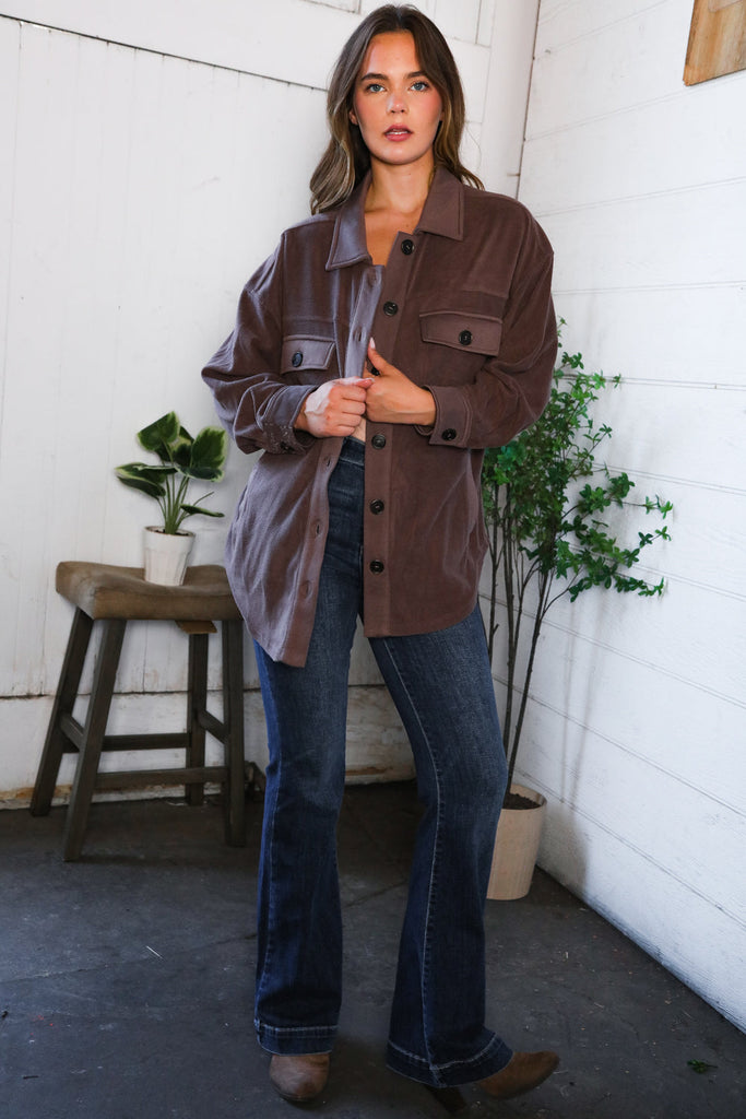 This shacket is one of those easy throw-on pieces you’ll wear all the time. It’s got that oversized fit with button front and two chest pockets that give it a laid back vibe. The fabric feels soft but still has some structure, so it layers perfect over tanks, tees, even light sweaters. The length hits below the hip which makes it great with jeans or cutoffs. You can roll the sleeves up or leave them down. It’s that go-to piece for days you want to feel comfortable and put together.