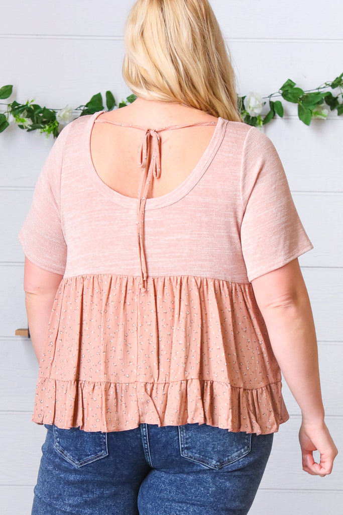 Two Tone Knit + Floral Woven Rayon Crinkle + Tie Back