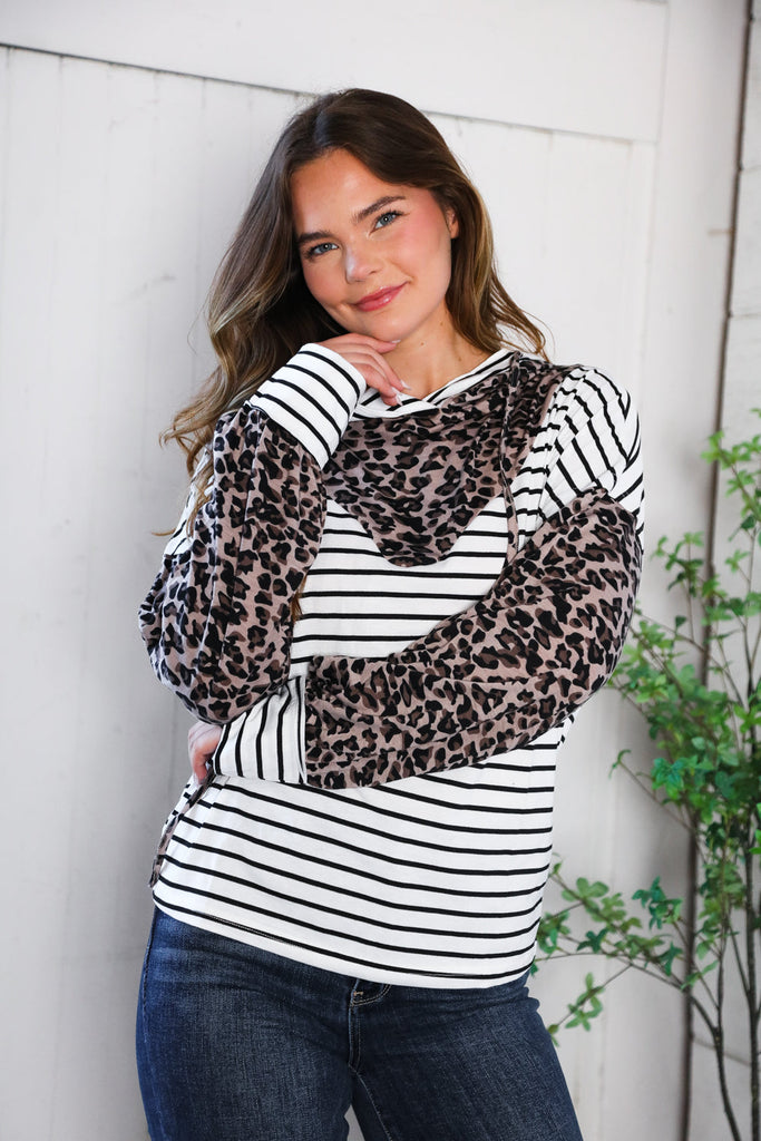 This hoodie perfectly combines our favorite animal and stripe prints. It is soft, stretchy and light weight. A great piece for running errands or casual nights out.