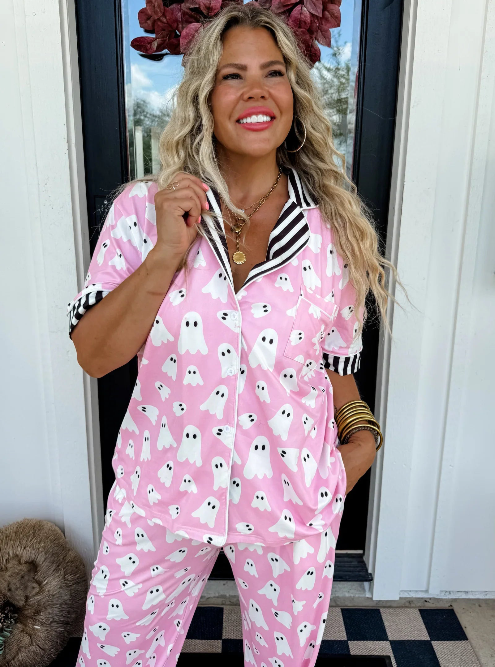 Our Luxe PJ Lounge sets are the perfect sleep set for both comfort and style. Features a button-up top with short sleeves and matching SHORTS, with cute new designs that will keep you looking good while you relax. The fabric is ultra-soft, STRETCHY and lightweight for a relaxed feel. Pants have pockets and elastic waist. Feature contrast stripe fabric on trim and collar for an extra "luxe" feel.