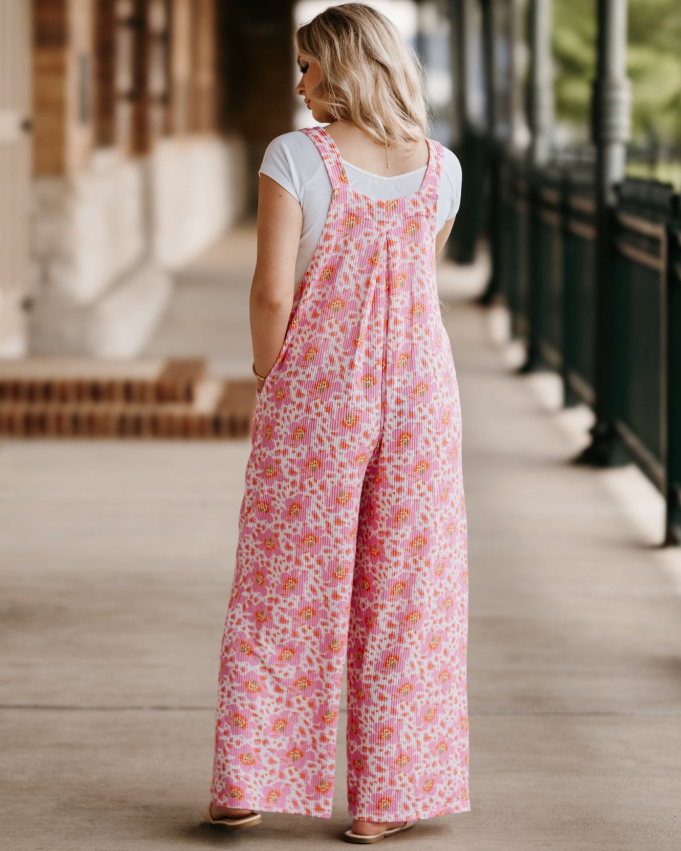 New Summer print overalls! Printed on our super popular ribbed fabric. We shortened the length 2", added buttons on the overall strap so there is no strap "hanging" in the front, and added a pleat to the back to make a better "draped" look!
