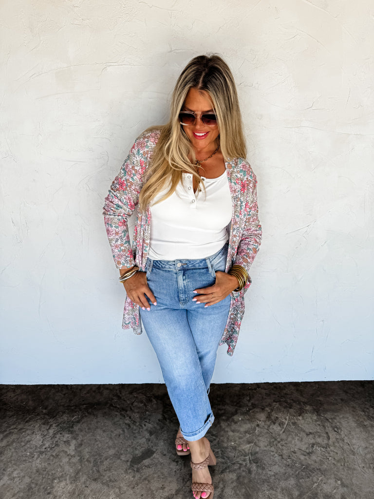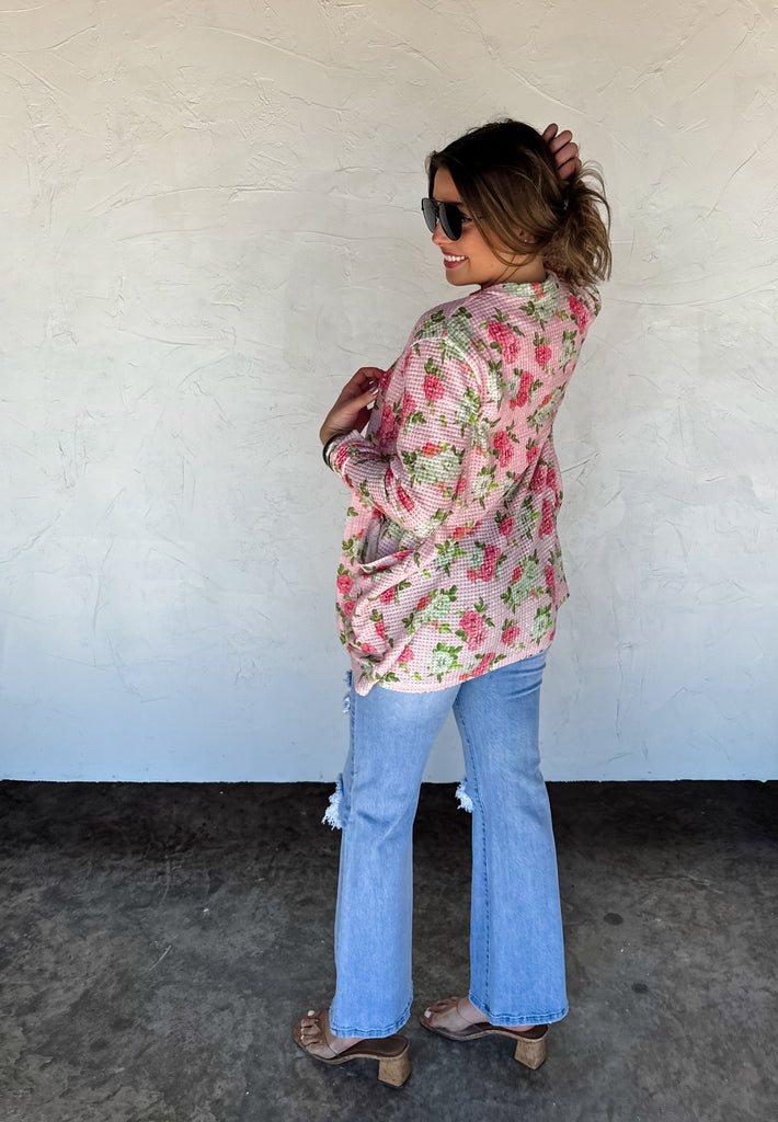 Our popular thumbhole popcorn cardigan you guys have grown to love are now here in floral spring prints and are sure to be a hit with your customers!