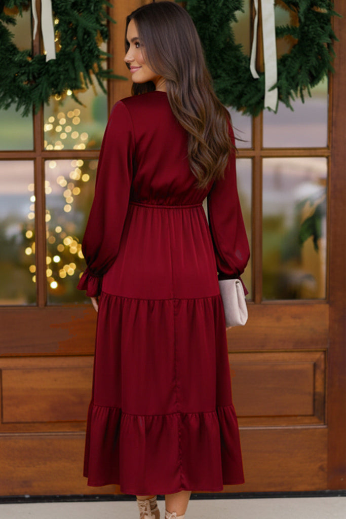 This v neck satin maxi dress is any holiday event's dream. We love all the little details that give the shape so much dimension! Flattering on so many different body types you will be flooded with compliments on this one. And yes it does have pockets!