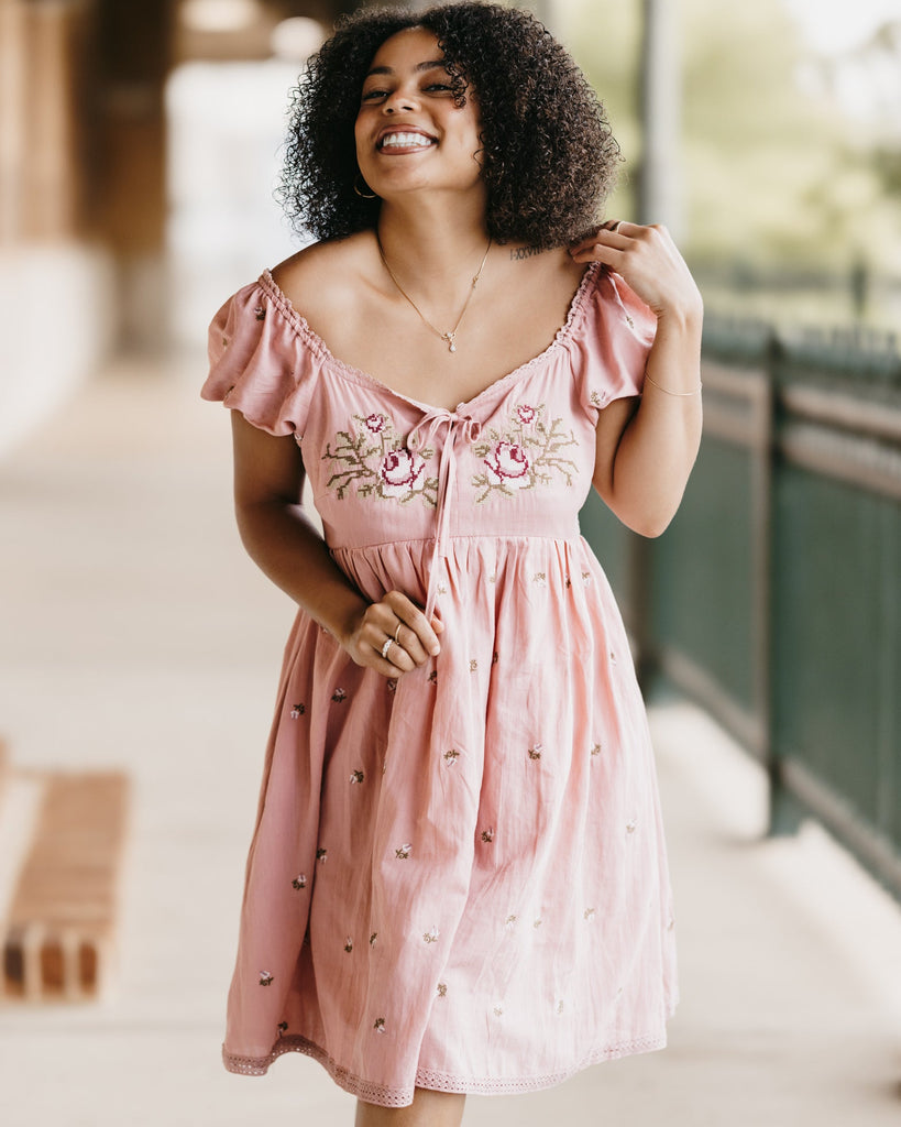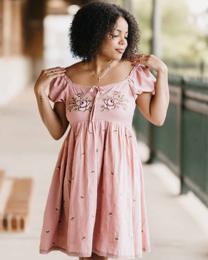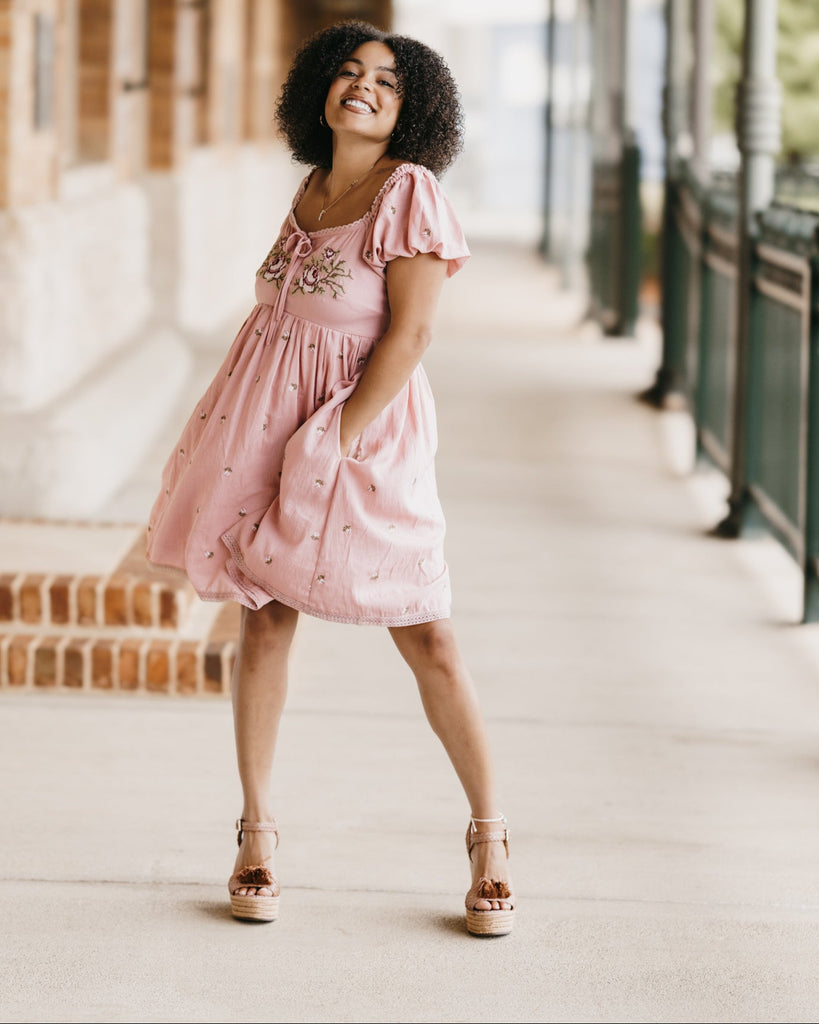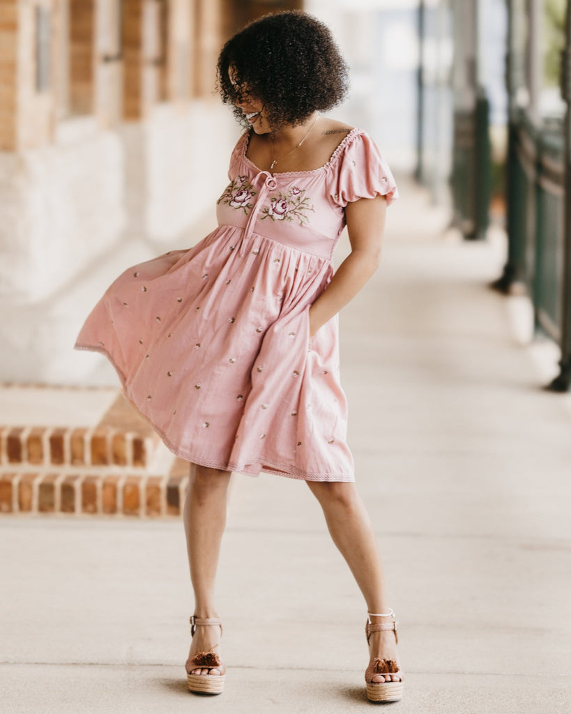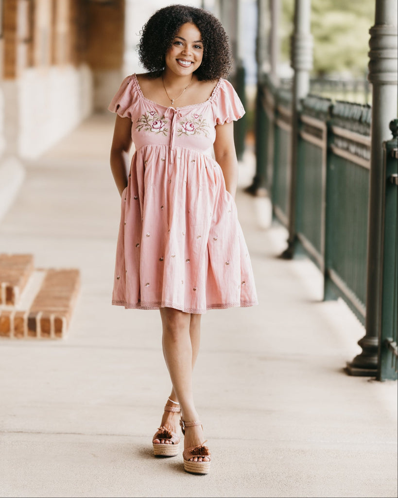 EMBROIDERED BABYDOLL DRESS FEATURES:
