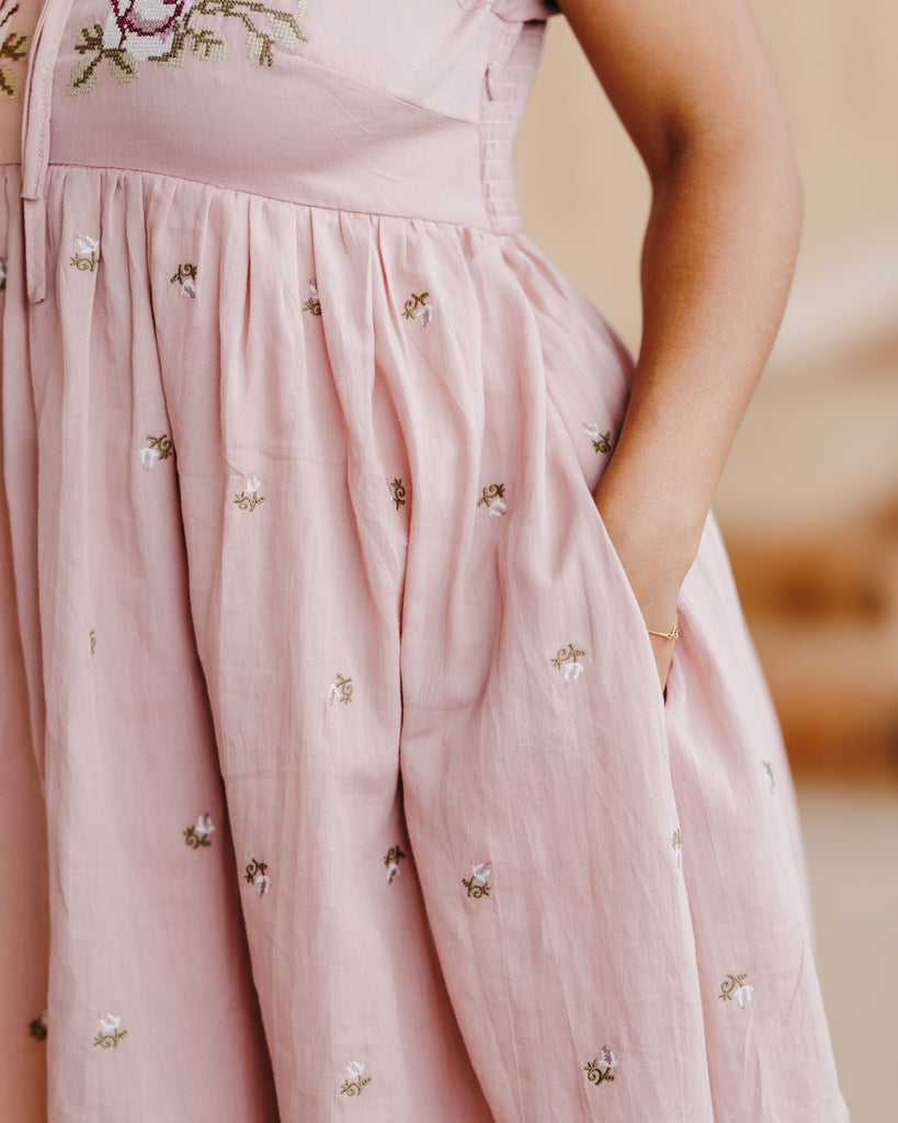 - ALL OVER DAINTY FLORAL EMBROIDERY ACCENTS